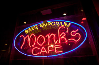 Recently I was on a trip to Philly. The first thoughts that went through my mind were to get a good cheesesteak, go to DiNic's for a famous roast pork sandwich and pick up some Russian River beer. Well I got there to late to go to DiNic's, couldn't find a good cheesesteak place near me and I needed to go somewhere to get away from the smell. Lets just sasy that Philly smells intertesting . . . sorry Philly people. I pulled out my trusty phone and typed beer into the google maps search menu. After searching through options of places that only served beer for the masses I stumbled upon one called Monk's Cafe.